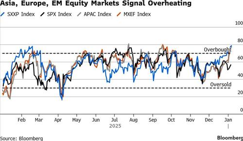 On Wednesday a fresh Bloomberg headline further noted: "The Japan-China squabble is causing some jitters after a strong start to the year for the region’s stocks." It added: "The rally had also started to show signs of overheating. The 14-day relative strength index for the MSCI Asia Pacific Index climbed above 70 this week, entering technical overbought territory for the first time since early October."